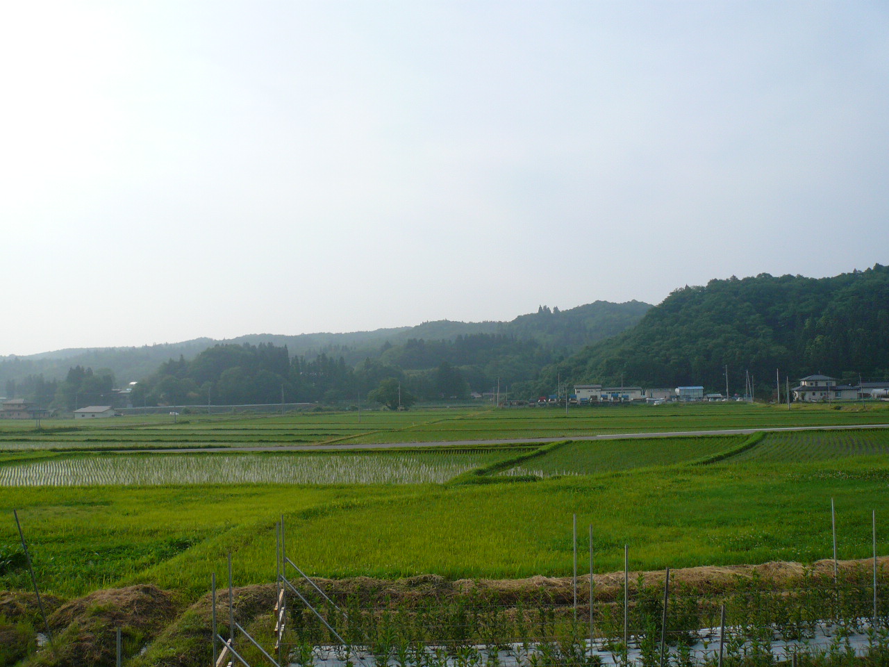 ↑ 「ファームステイ」先の家の前の景色。 田んぼが広がっています。