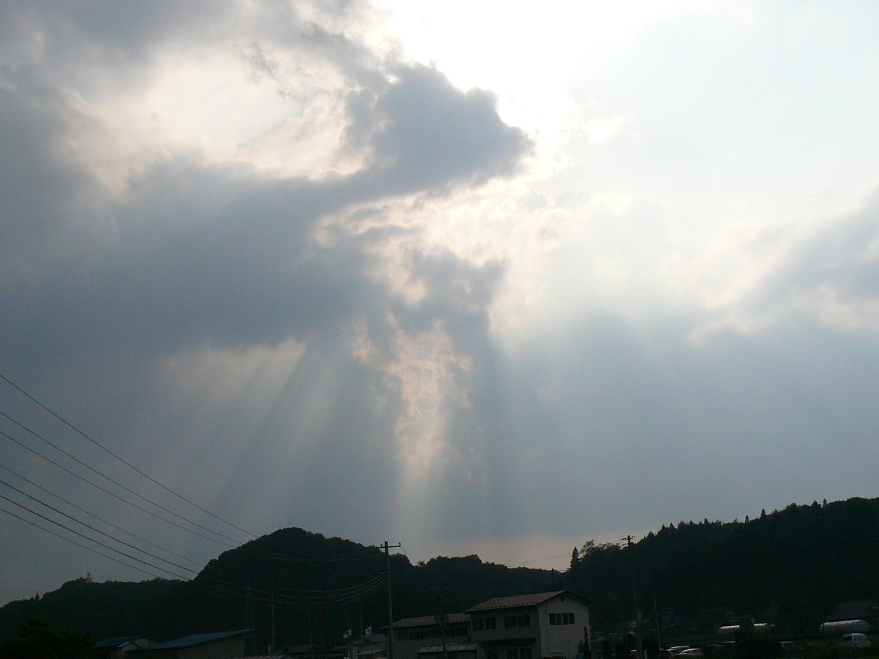 ↑ とてつもなくつらい「水やり」の作業の終わり際。 曇の間から光が差し込んでいます。