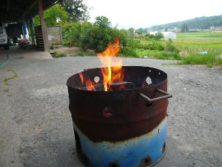 ↑ スケールの大きい「焼き肉」。この上に鉄板を置いて、その上で焼きました。