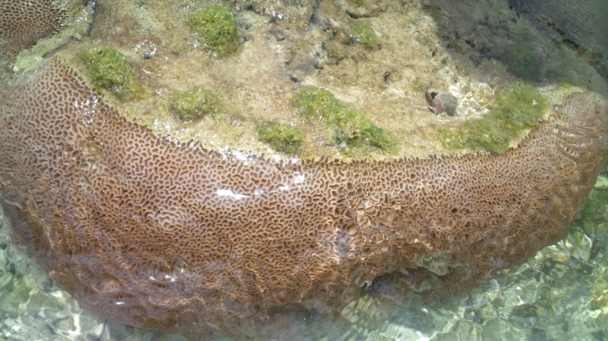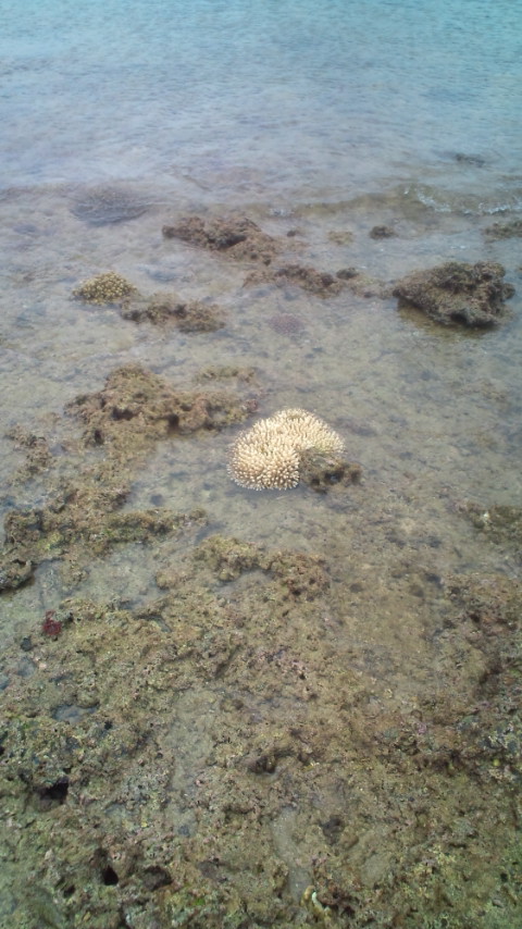 ↑ 潮が満ちても海水のかかることのない場所ではサンゴは生きられないので、こんなラインができるんですね。 ラインの名前は忘れました…。