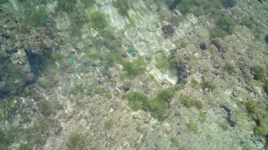↑ ルリスズメダイの幼魚が群れをなして泳いでました。成魚になるとテリトリー意識が強くなり、単独行動をするようになるらしいです。