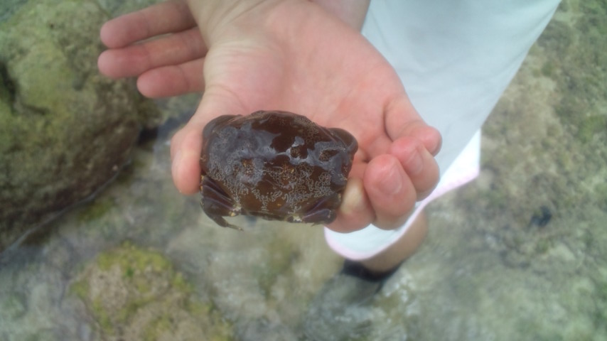 ↑ スベスベマンジュウガニ。こいつを食べたら(食べた人が)死にます。神経毒らしいですな。…ちなみに、沖縄のカニは、食べたら(食べた人が)死ぬものが多いらしいです。