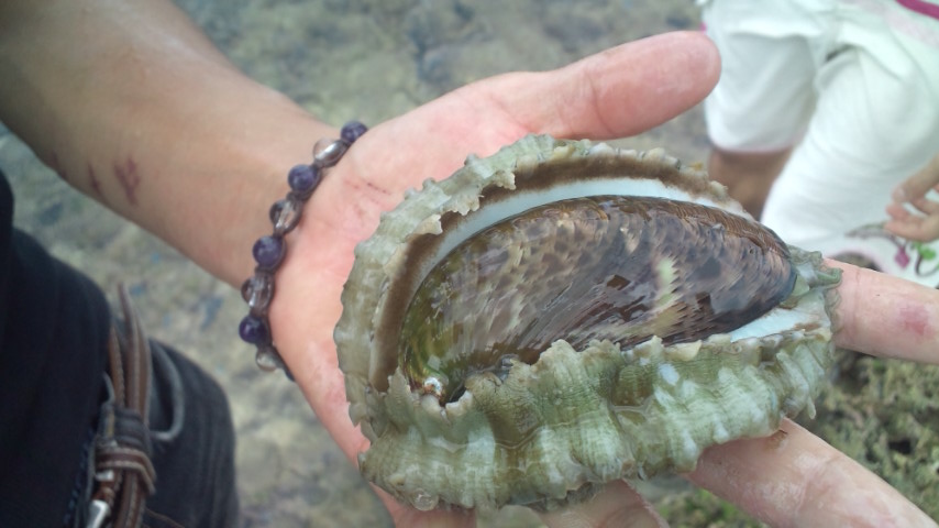 ↑ なんだったかな、詳しい名前は忘れました。アワビみたいな。ミノガイだったかな……。食べたらおいしいらしいです。