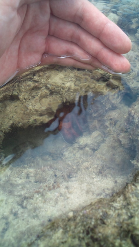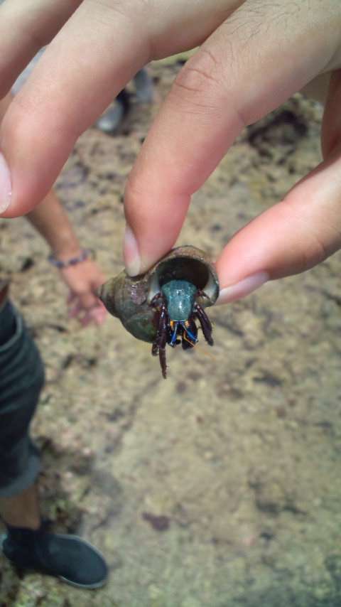 ↑ 見にくいですが…。コモンヤドカリだと思われる。結構大型のヤドカリでした。食べたりするらしいです。