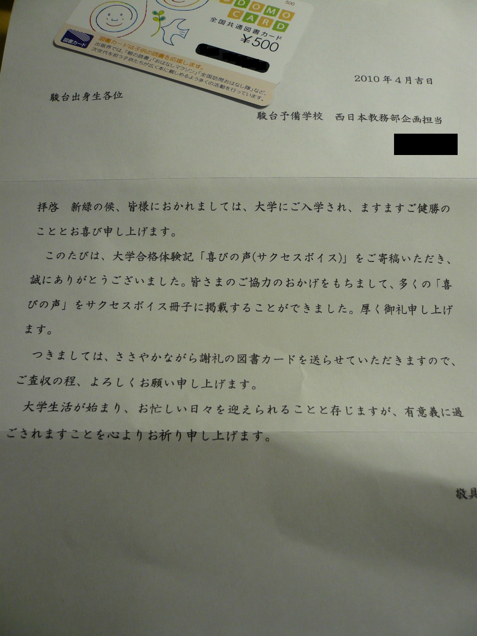 最近、駿台からの贈り物が来た、とのことで合わせてこちらに送ってきました。