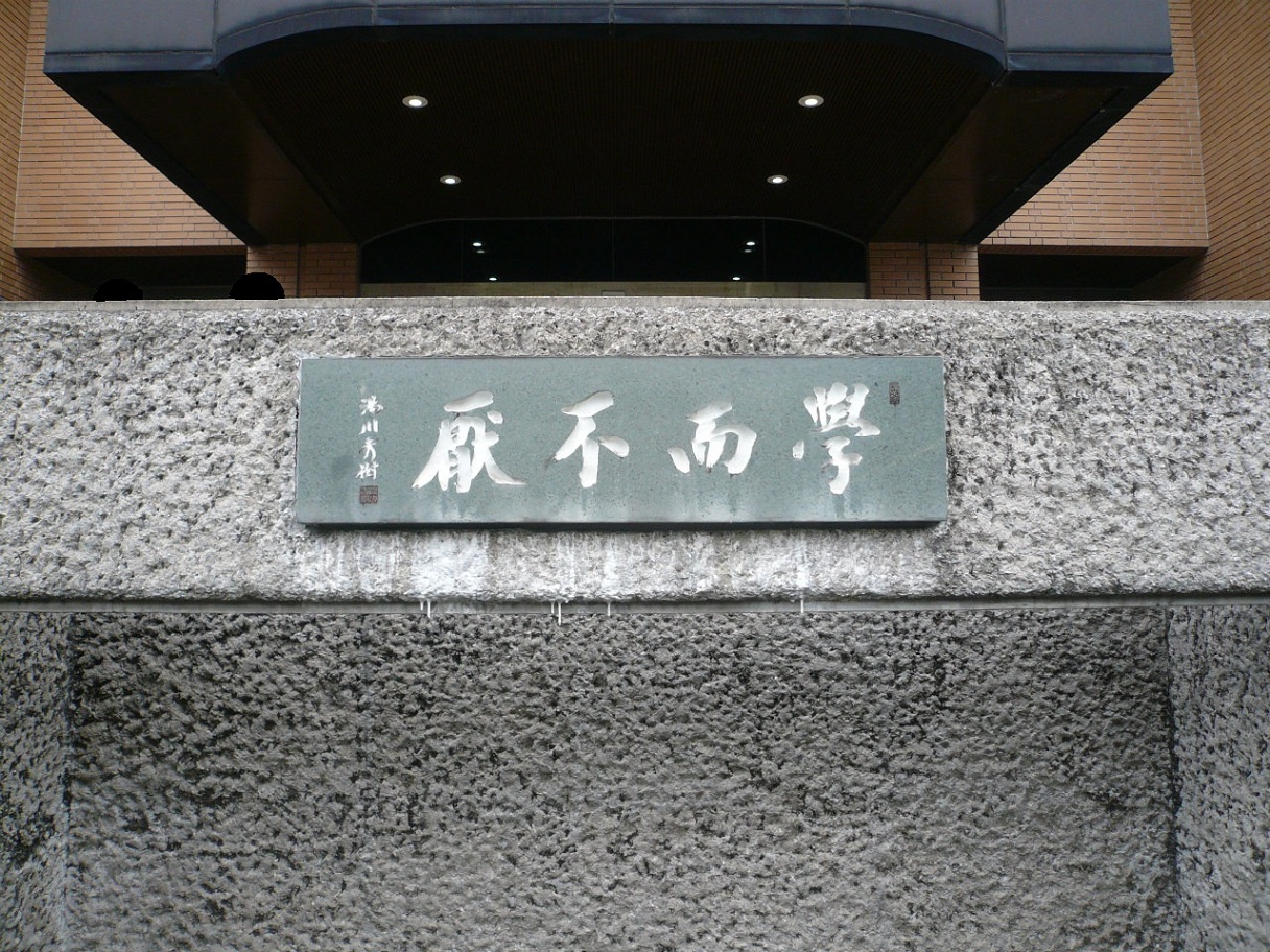 ↑ 図書館前にて。湯川秀樹先生が琉大に訪れた時に書いたものだとか。