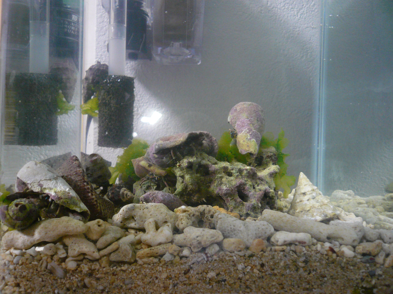 ヤドカリは、サンゴヤドカリ数種(たぶん)やサンゴヨコバサミ 、オニヤドカリの一種(…だと思います、黄色に黒の縦線。毛は生えてませんが…)など15匹。