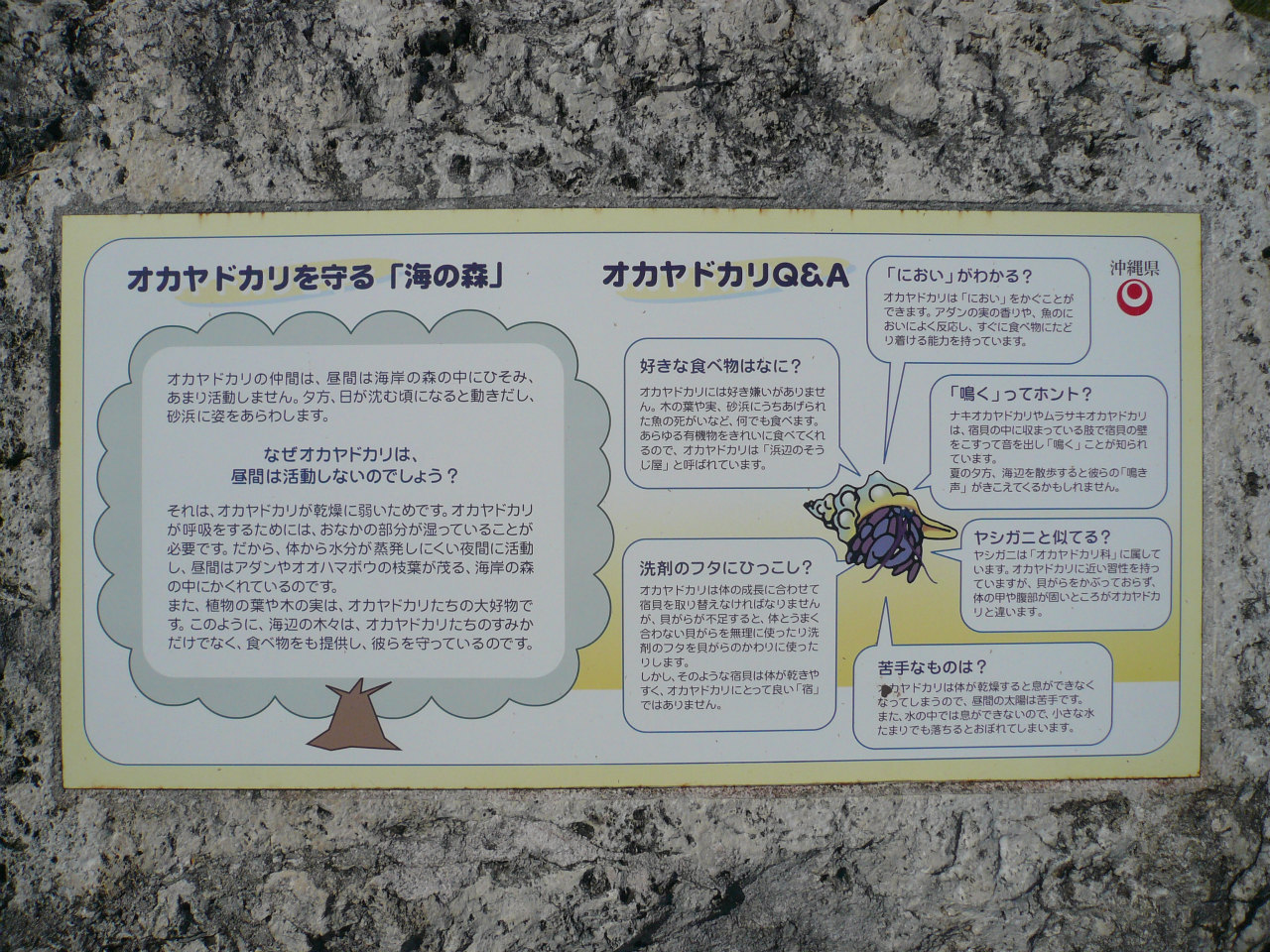 ↑ こんな看板(?)がある場所も。オカヤド好きな僕はテンションが上がります。なんだか、ゲームの情報でもそうですが、知っていることがきれいにまとめられていると嬉しくなるんですよねぇ。