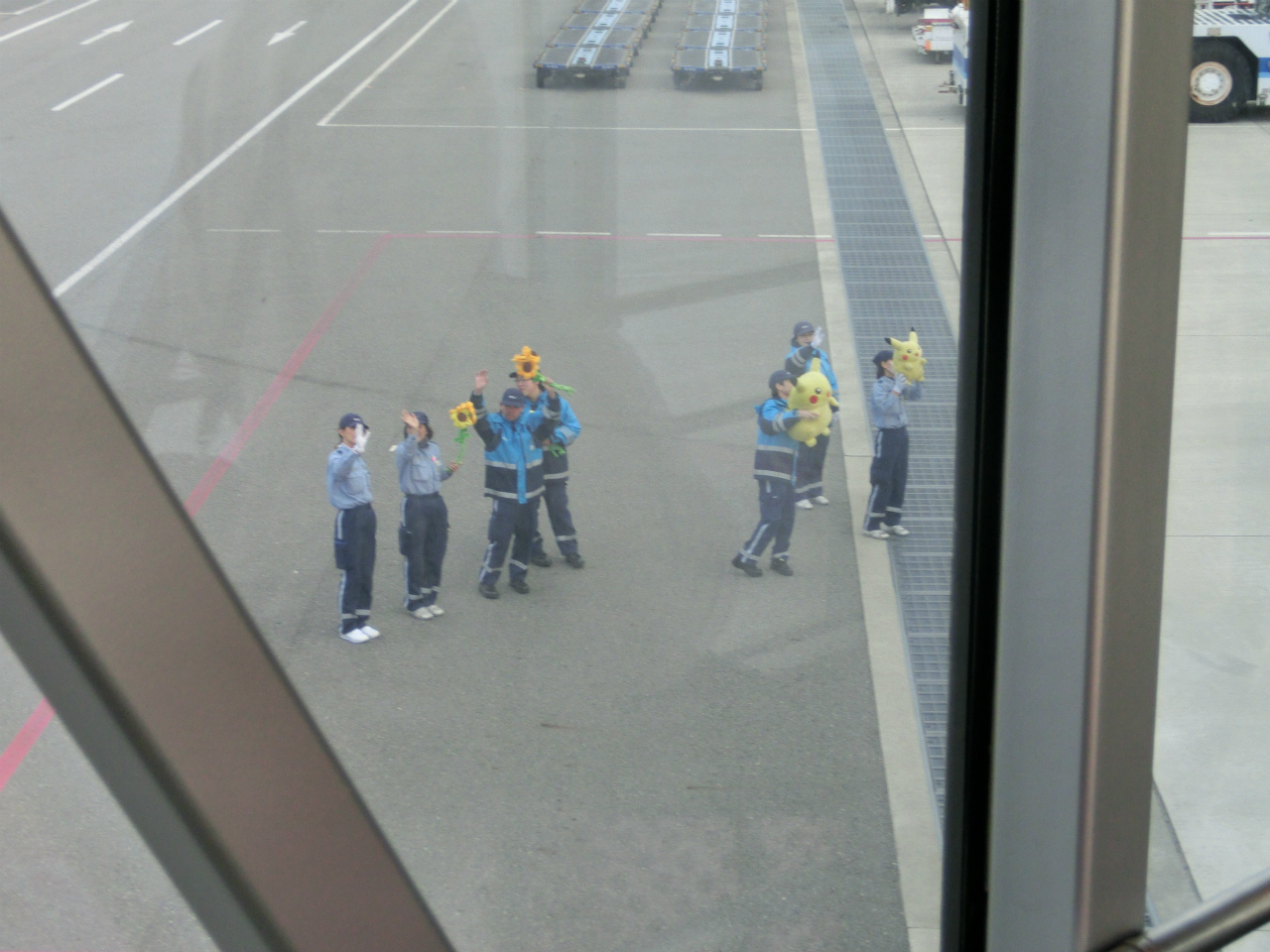 ↑ 乗り込みの時。スタッフの人達がぬいぐるみを振って送り出してくれました。