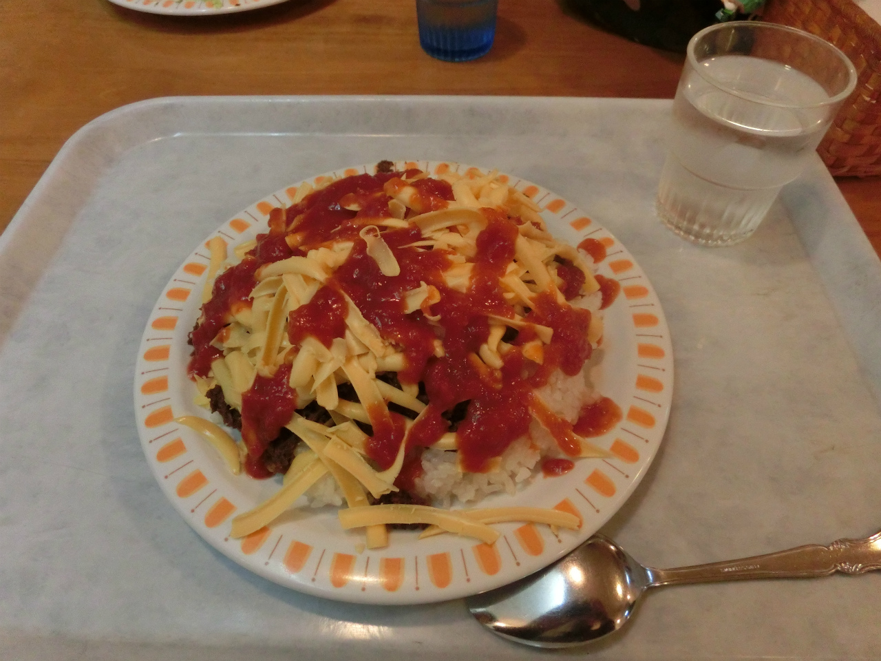 ↑ 野菜がニガテな僕の為にあるかのようなメニューですよね。肉とチーズだけだなんて。これで500円。なかなかお腹も満たされます。