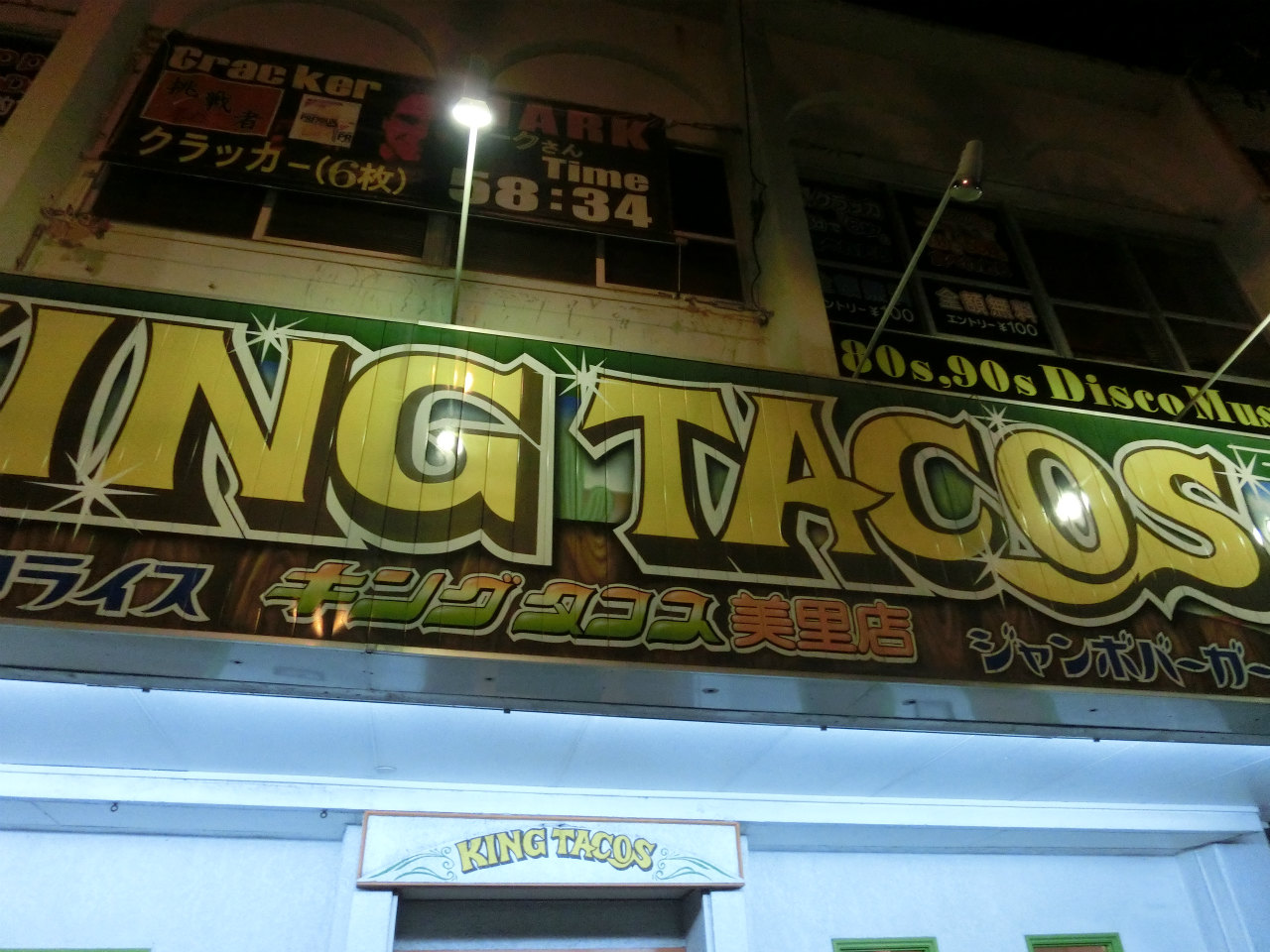 ↑ 10日、沖縄市にあるキングタコス美里店へ行ってきました。普天間のキンタコに比べ、店は広いし綺麗だし駐車場もあるしで、なかなかいいじゃないですか! ただ琉大からちょっとばかし遠い。