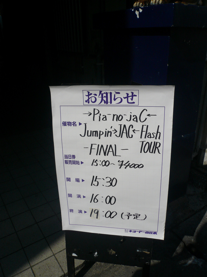 …が、今回は先輩と友人と共に練習を途中で切り上げ、ピアノジャック(正確には「→Pia-no-jaC←」ですが、書きやすいのでカタカナ表記にしています)のライブへと向かいました。