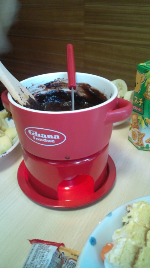 お菓子の量もちょっと多めで、自宅生の友人が持ってきてくれたおかげでチョコフォンデュもできました。チョコバナナいいですよね。いろいろ食べまくりました。