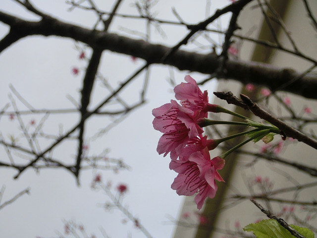 2月なのに桜が咲くなんて、さすが沖縄。 ソメイヨシノとは品種が違いますけどね。