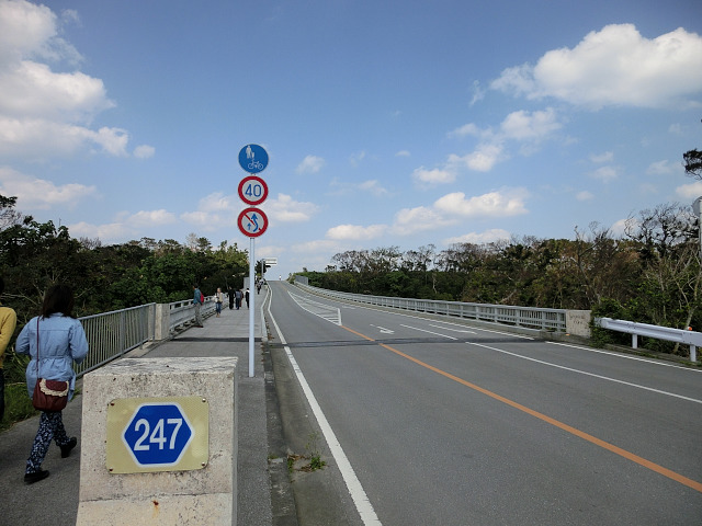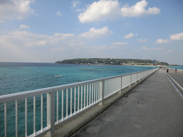 車を停めて橋まで歩いている人達(たぶん観光客)は多かったのですが、その距離(2.6kmくらい)のせいか古宇利島までたどり着いた人は少なかったようです。 ブルーシールでアイスを食べた後、店の人と話していて「歩いてきた」というと驚かれました。