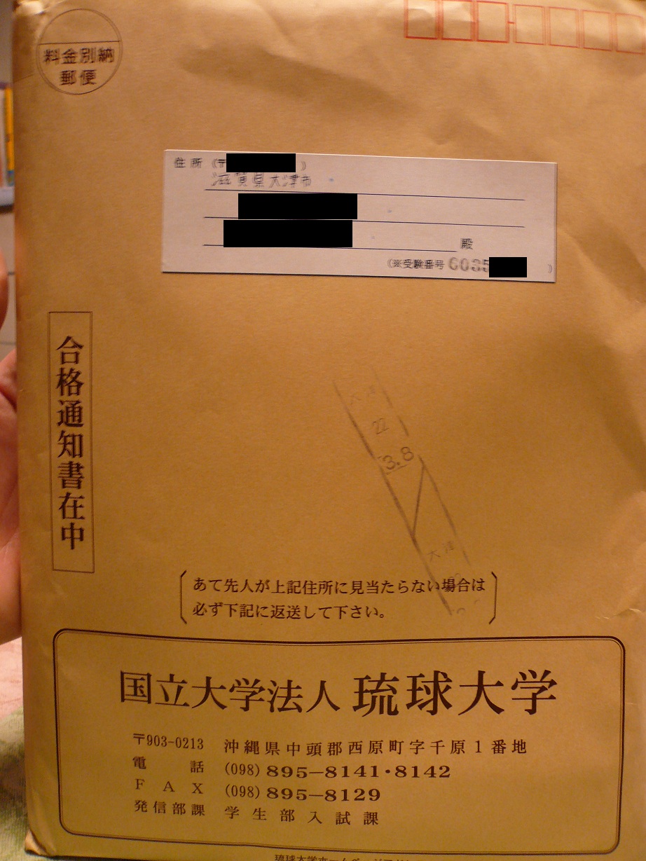 さてさて、琉球大学理学部海洋自然科学科生物系の入学手続き一連の記事です。