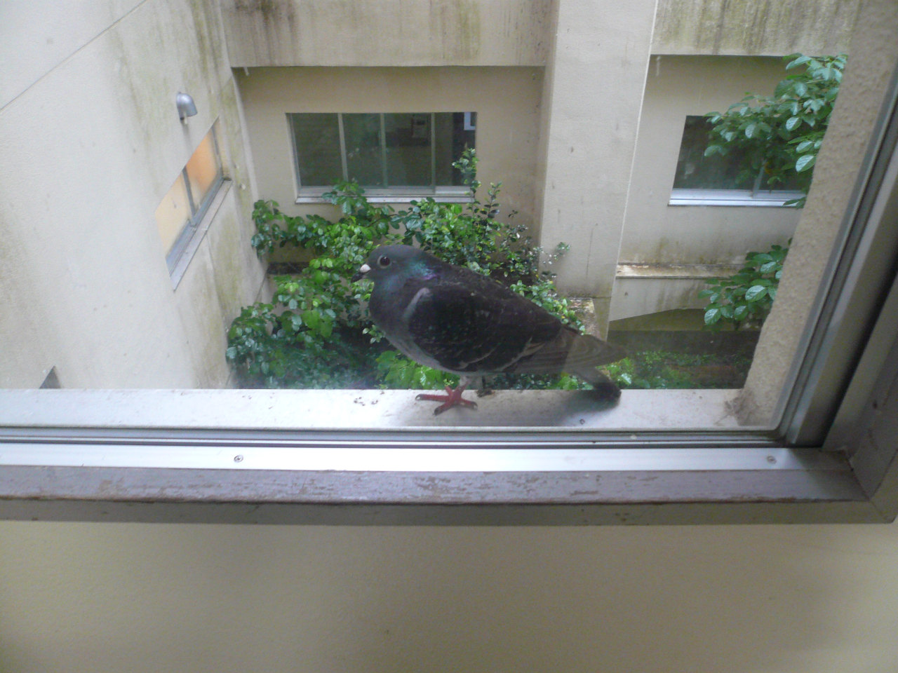 ↑ 2時限目の講義終了後、共通教育棟3号館2階にて。ハトが雨宿りしてました。