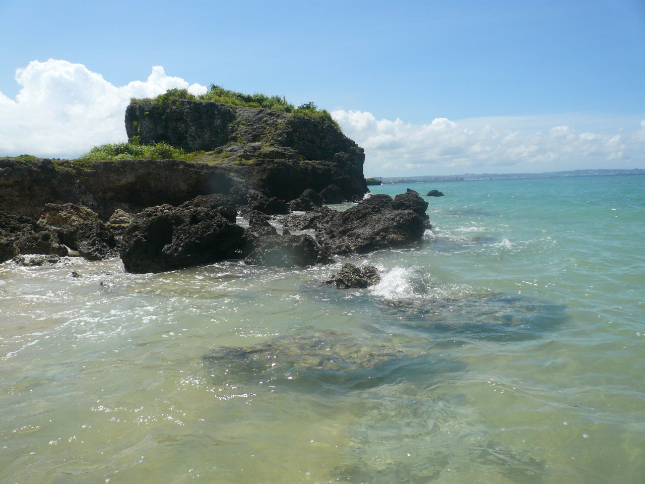 ↑ 岩の周りには魚がけっこういました。…が、前述の通り波が強く、体がたたきつけられそうに…。これも「自己責任」なのだ……。