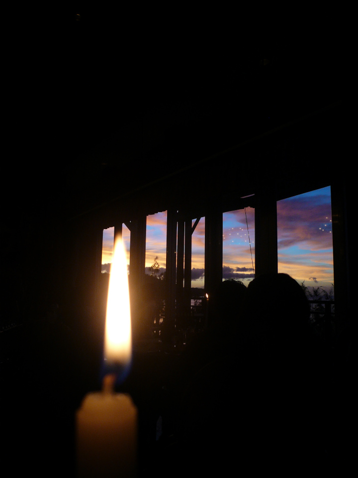 ↑ その日の夕食の場にて。フライパンから炎が燃え上がったりとなかなか楽しめました。