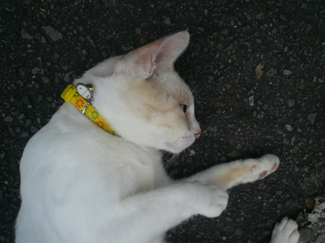 ↑ ネコ!首輪がついてる…。店の飼い猫だろうか…?