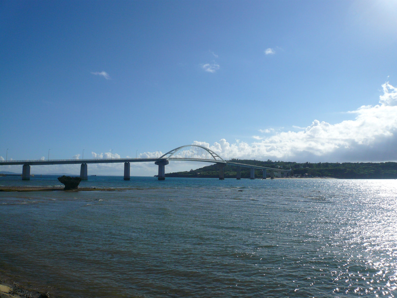 ↑ 本島と瀬底島を結ぶ、「瀬底大橋」。でかいです。