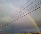写真は、寝過ごして着いた駅で見つけた虹です。