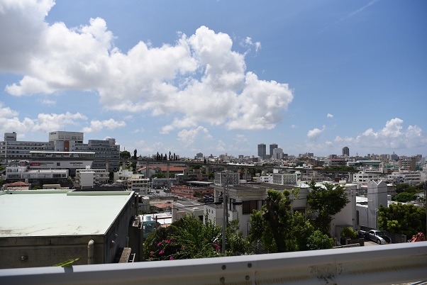 高台にあるので、眺めが良い……見えるのは那覇の町並みとモノレールですけれどね。