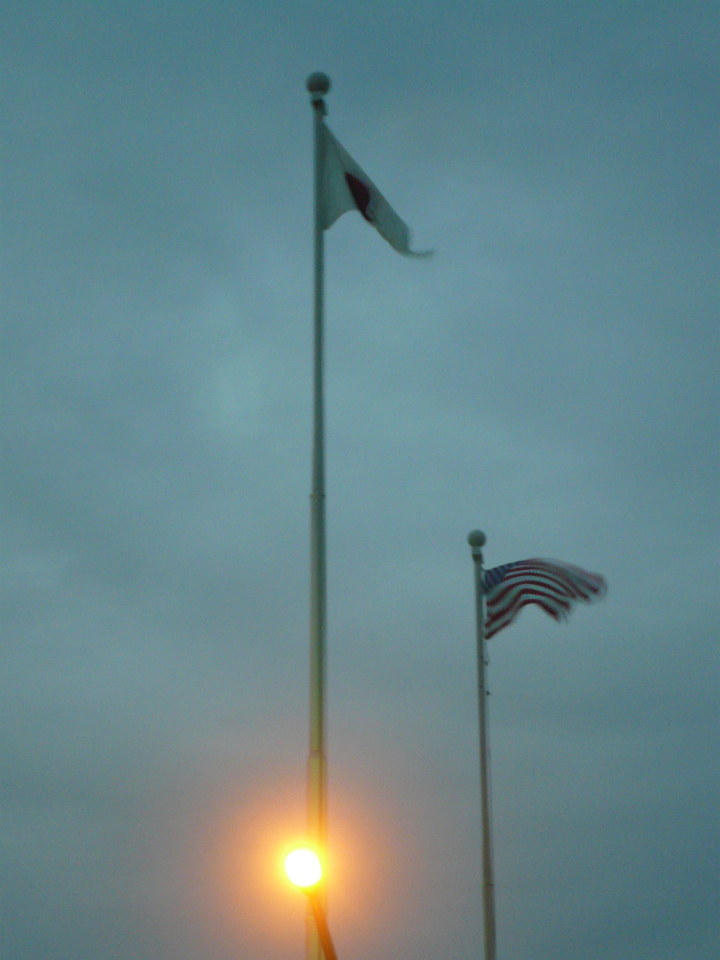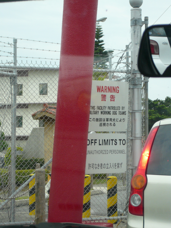 ↑ 夕食会は基地内で。ケータイのGPS機能で調べたところ、「トリイステーション米軍施設」というところでした。