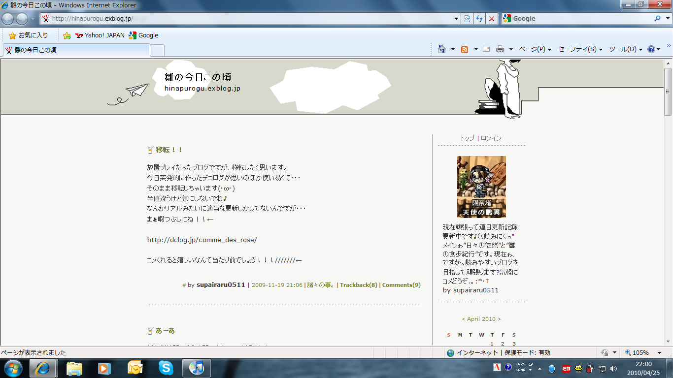 始めてから少しした時にコメントをくださった方のブログなのですが、ごらんの通り移転のお知らせが書かれております。
